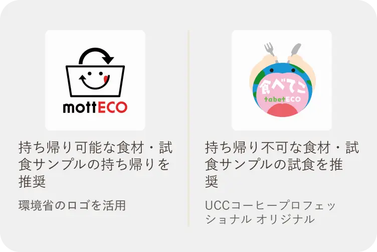 試食にてご提供する紙資材・プラスチックはそれぞれのゴミ箱へ分別いただくよう、ご協力をお願いします。